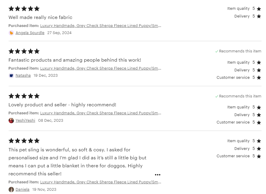 These handmade puppy/small dog carriers are perfect for new pups who can't socialise yet, when those little legs get tired or your little one just wants to travel in style. As every carrier is made to order, the size can be altered.