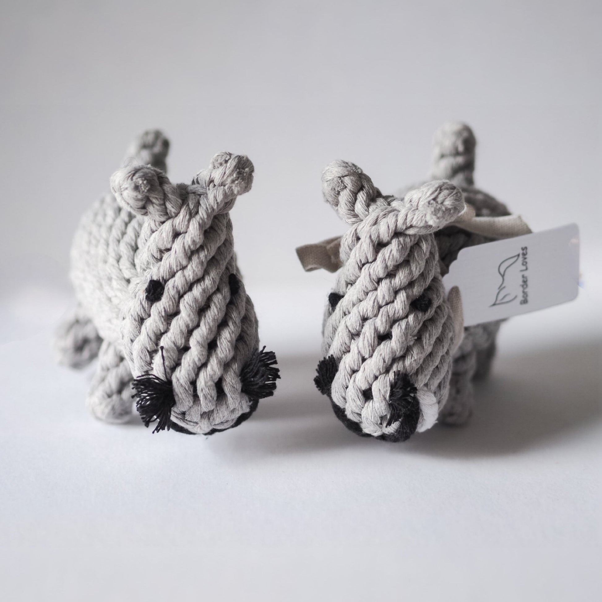 Cute Hippo Rope Dog Toy Gift for light chew and play in soft Grey and suitable for smaller breeds or puppies